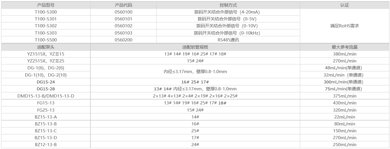 T100系列產品是主要針對配套客戶設計研發的蠕動泵驅動器,最高轉速為100rpm,轉速可調節,適配多種泵頭,最大能提供380mL/min的參考流量,可采用底板和面板兩種安裝方式,直流11.4-25.2V供電,體積小,結構緊湊,適合配套使用。