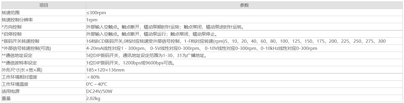 說明:*項目為撥碼開關結合外部信號控制方式所特有