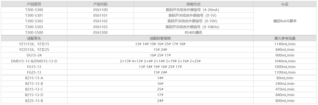 T300系列產品是主要針對配套客戶設計研發的蠕動泵驅動器,最高轉速為300rpm,轉速可調節,適配多種泵頭,最大能提供1140mL/min的參考流量,可采用底板和面板兩種安裝方式,直流24V供電,體積小,結構緊湊,適合配套使用。