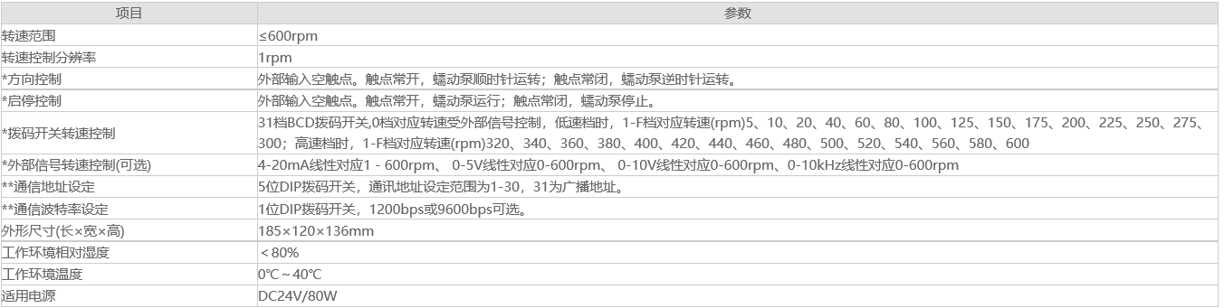 T600系列產品是主要針對配套客戶設計研發的蠕動泵驅動器,最高轉速為600rpm,轉速可調節,適配多種泵頭,最大能提供2200mL/min的參考流量,可采用底板和面板兩種安裝方式,直流24V供電,體積小,結構緊湊,適合配套使用。