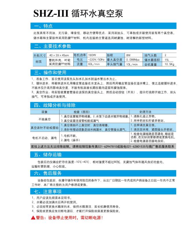 電機功率:180W電壓:~220v/50Hz流量60L/min楊程8M最大真空度0.098Mpa單頭抽氣量10L/min抽氣頭數量:2儲水箱容積:15L材質:整機外殼、泵殼、葉輪、采用防腐PP材料。外形尺寸:40*39*45cm