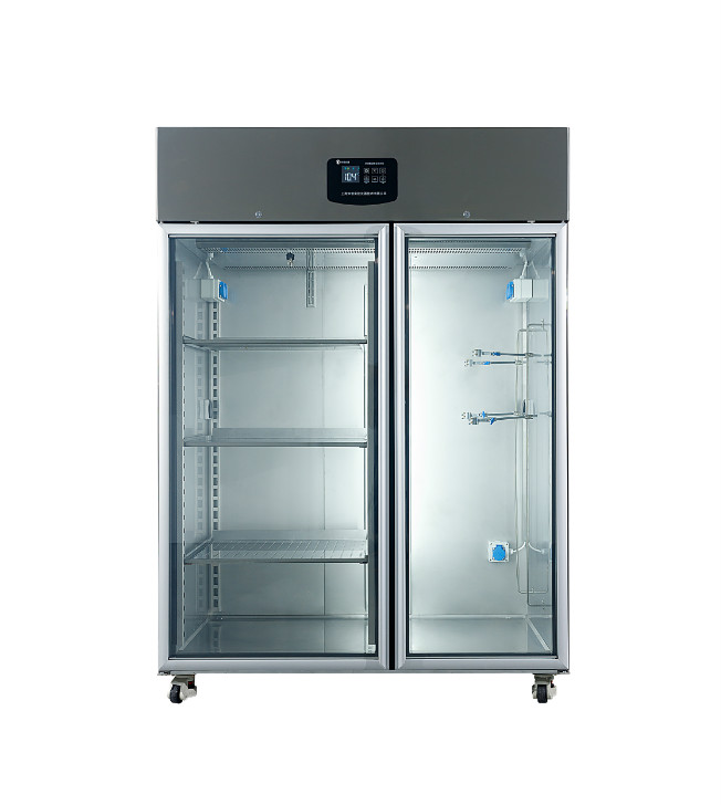 2、中空玻璃內貼導電膜,產生微熱消除了層析柜凝露難題,兩塊玻璃形成的真空隔熱層,內部充惰性氣體更能保證內部溫度不受外界影響。