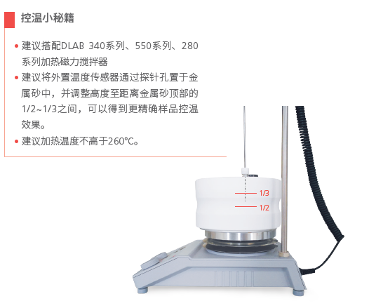 • 模塊配有外置探針孔,搭配DLAB加熱磁力攪拌器可實現外部精確控溫;