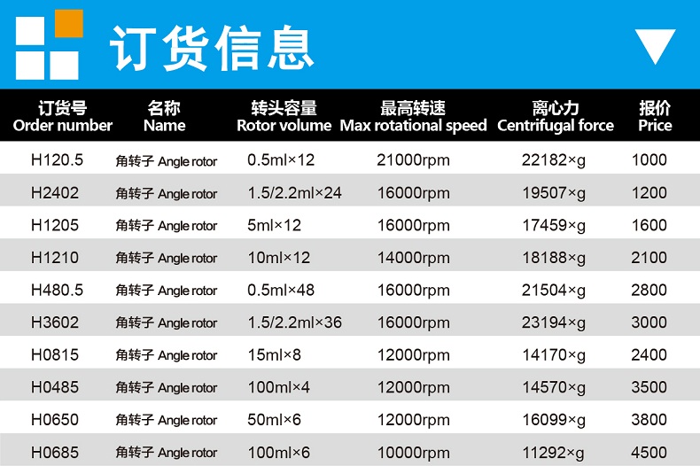 | H120.5 | 角轉子 | 0.5ml*12 | 21000rpm | 18824g |