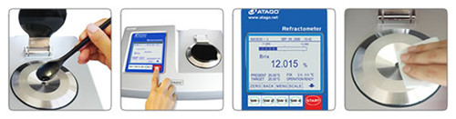 滴2-3滴樣品在棱鏡樣品槽內→按START鍵進行開始測量→閃爍3秒后測量數值表示→測量完畢后將棱鏡樣品槽進行擦拭工作。