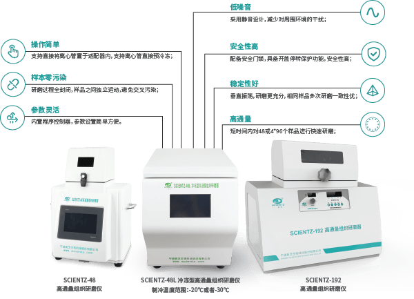 新芝生物推出的SCIENTZ-192高通量組織研磨器是目前新芝生物所有研磨產品中通量最高的產品。支持對包括土壤、植物和動物的組織/器官、細菌、酵母、真菌、孢子、古生物標本等的原始DNA、RNA和蛋白質進行提取和純化。支持干磨、濕磨和混合研磨及均質化處理。本產品最高可支持4*96個不同樣本進行研磨處理,非常適合動植物疾控部門等需要短時間處理大量樣品的單位采購使用。