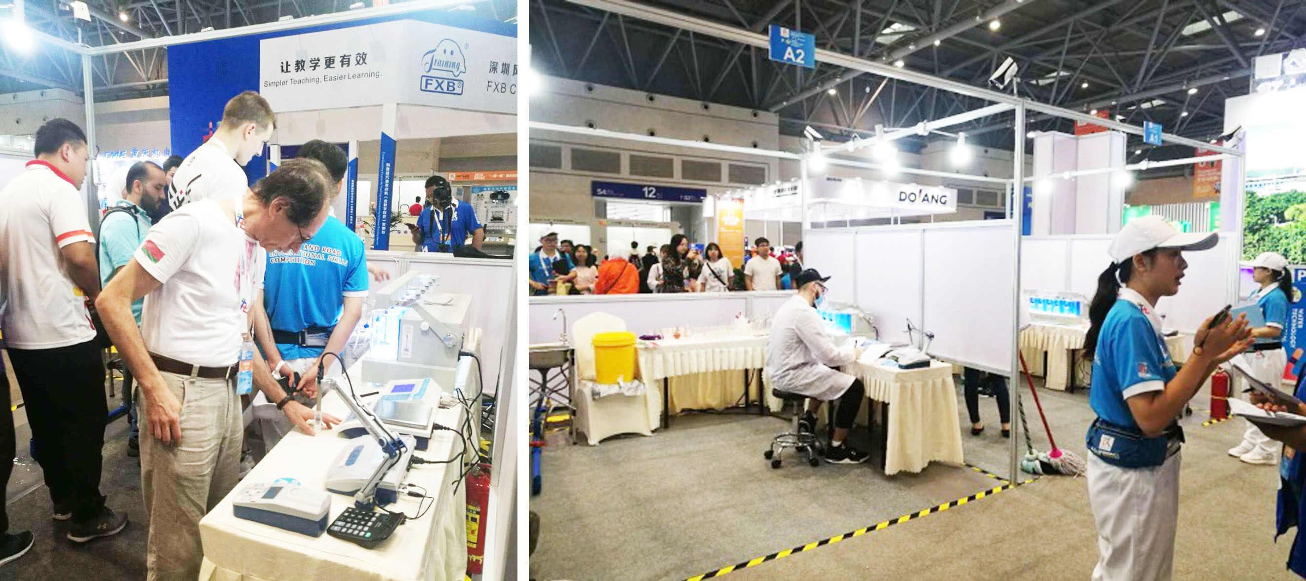 云賽智聯股份有限公司旗下上海儀電科學儀器股份有限公司(簡稱儀電科儀股份)作為本次大賽的水處理技術項目主要比賽儀器的贊助支持廠家,贊助了“雷磁”品牌的PHS-3E型pH計和WZB-175型便攜式濁度儀,分別用于pH項目和濁度項目的比賽。為了給來自全球各地的參賽隊伍提供優質的賽事服務,保證賽事的順利舉辦。我們的工程師提前抵達現場為這些儀器進行現場調試,并為參賽選手提供咨詢指導,旨在對水處理項目提供優質的產品、技術和服務。
