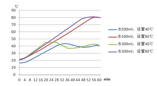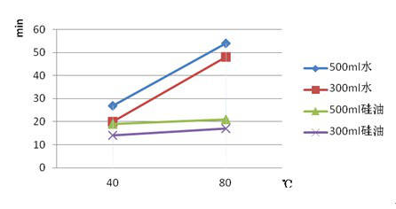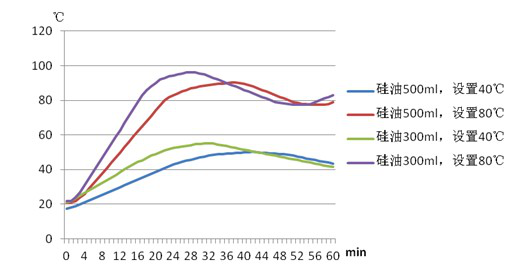 針對(duì)大龍儀器的此類產(chǎn)品,我們分別利用水和硅油作為被加熱介質(zhì),在同一溫度條件下,進(jìn)行加熱實(shí)驗(yàn),所得實(shí)驗(yàn)結(jié)果如圖2-4所示。